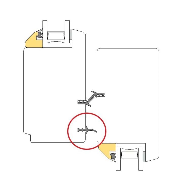 Tætningslisten er kun monteret på den stående del af midtersamlingen. Se evt. snittegningen.